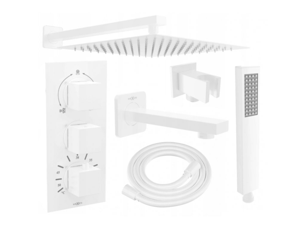 Mexen Cube DR02 podomietková vaňovo-sprchová súprava s dažďovou hlavicou 25 cm, biela - 77503DR0225-20