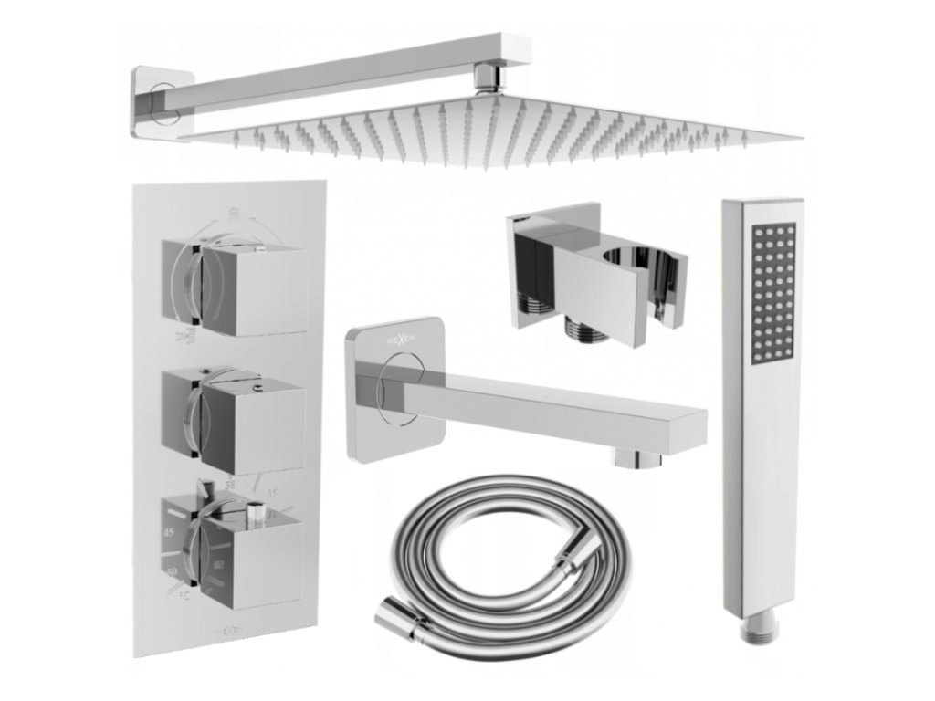 Mexen Cube DR02 podomietková vaňovo-sprchová súprava s dažďovou hlavicou 25 cm, chróm - 77503DR0225-00