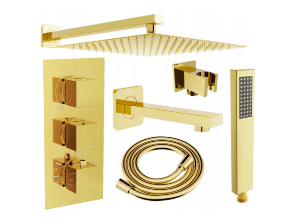 Mexen Cube DR02 podomietková vaňovo-sprchová súprava s dažďovou hlavicou 25 cm, zlatá - 77503DR0225-50