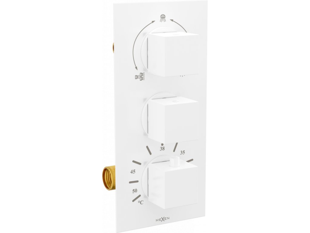 Mexen Cube termostatická vaňová a sprchová batéria, 3 výstupy, biela - 77503-20