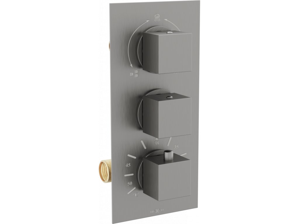 Mexen Cube termostatická vaňová a sprchová batéria, 3 výstupy, grafitová - 77503-66