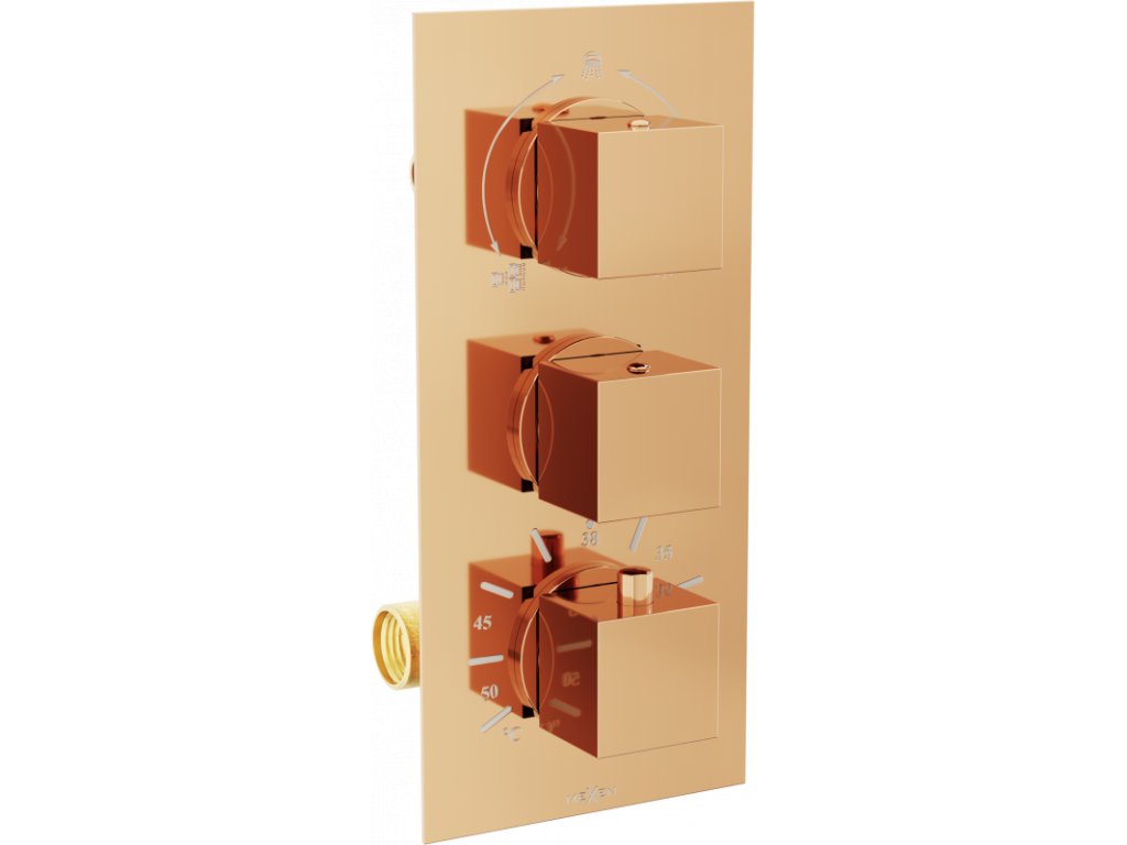 Mexen Cube termostatická vaňová a sprchová batéria 3-výtoková ružovo zlatá - 77503-60