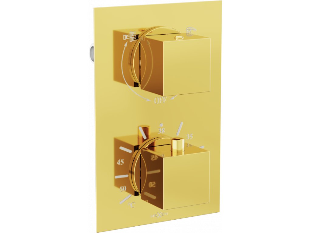 Mexen Cube termostatická vaňová a sprchová batéria s 2 výstupmi, zlatá - 77502-50