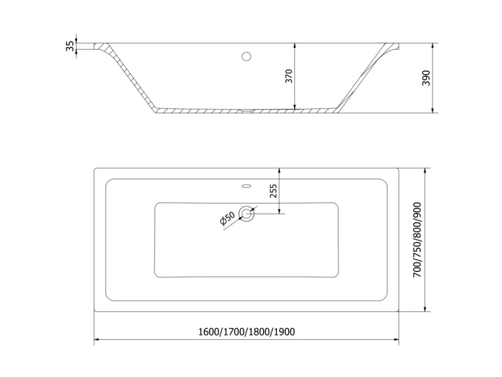 panel: 170 cm (predný panel), 80 cm (bočný panel)