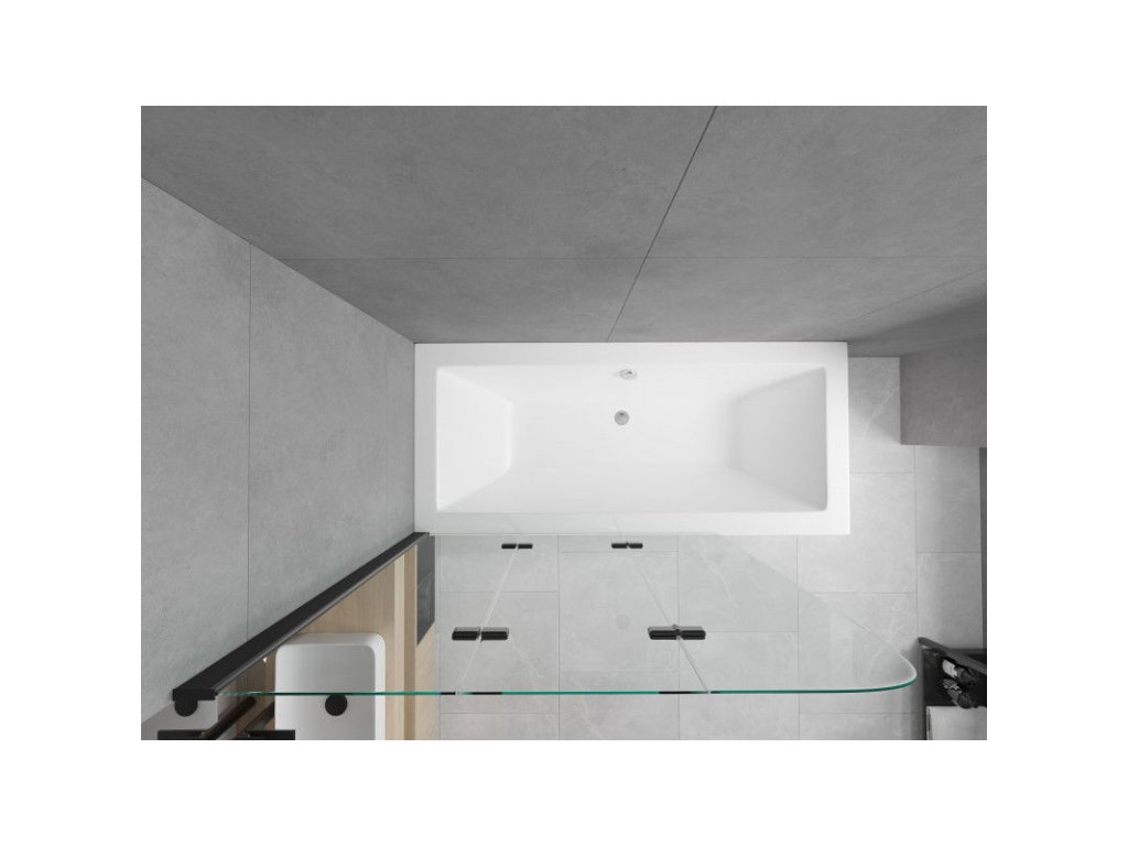 Mexen Cube vaňa obdĺžniková 180 x 80 cm s panelom a zástenou 3-krídlovou 120 cm, priehľadné sklo, čierny - 550518080X9012037000