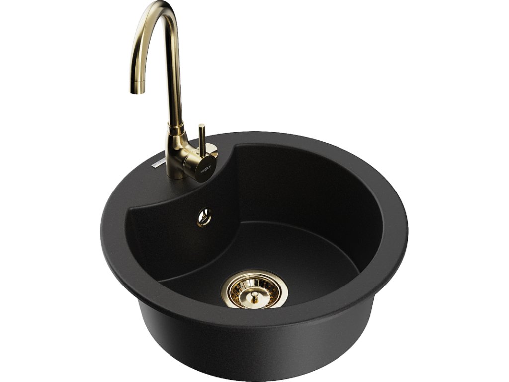 Mexen Diego drez granitový 1-komorový + batéria Telma, čierny - 6512-77-670200-50