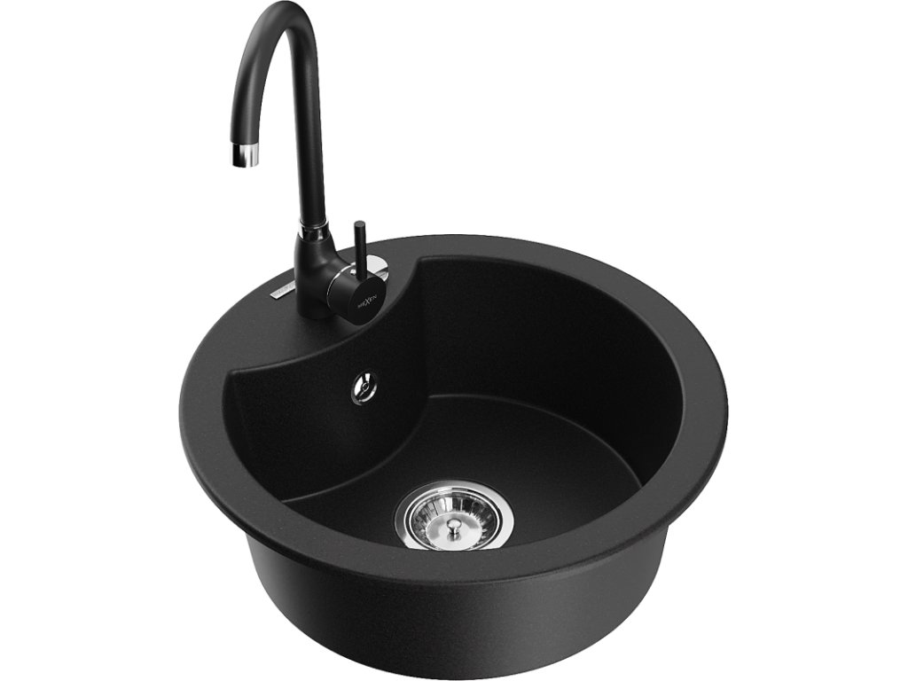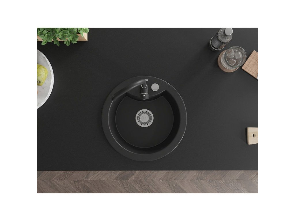 Mexen Diego drez granitový 1-komorový + batéria Telma, čierny - 6512-77-670200-70