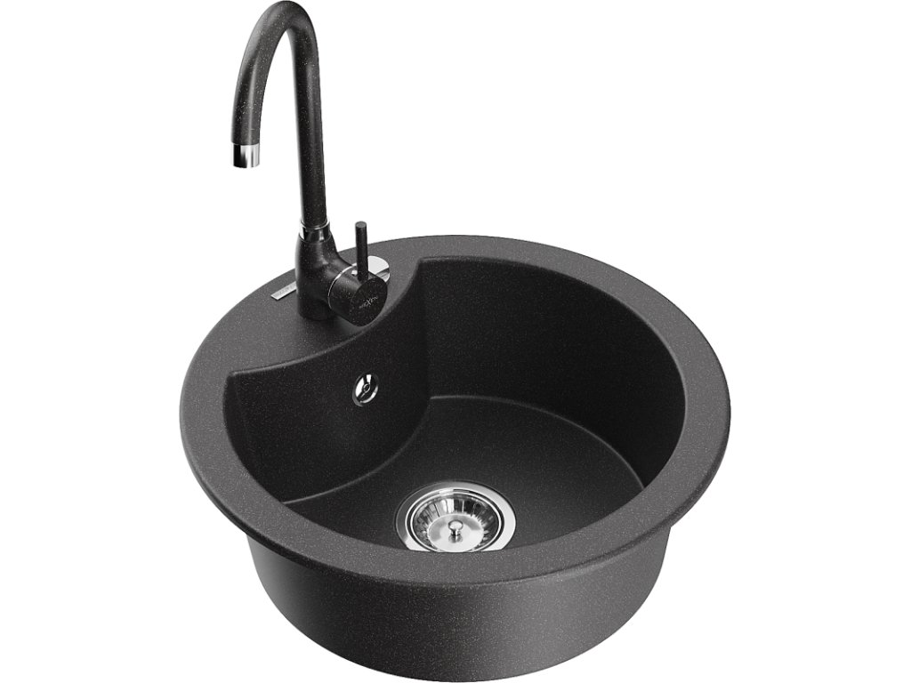 Mexen Diego drez granitový 1-komorový + batéria Telma, čierny škvrnitý - 6512-76-670200-76