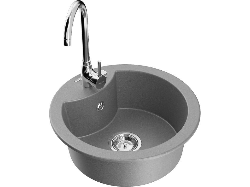 Mexen Diego drez granitový 1-komorový + batéria Telma, šedý - 6512-71-670200-00