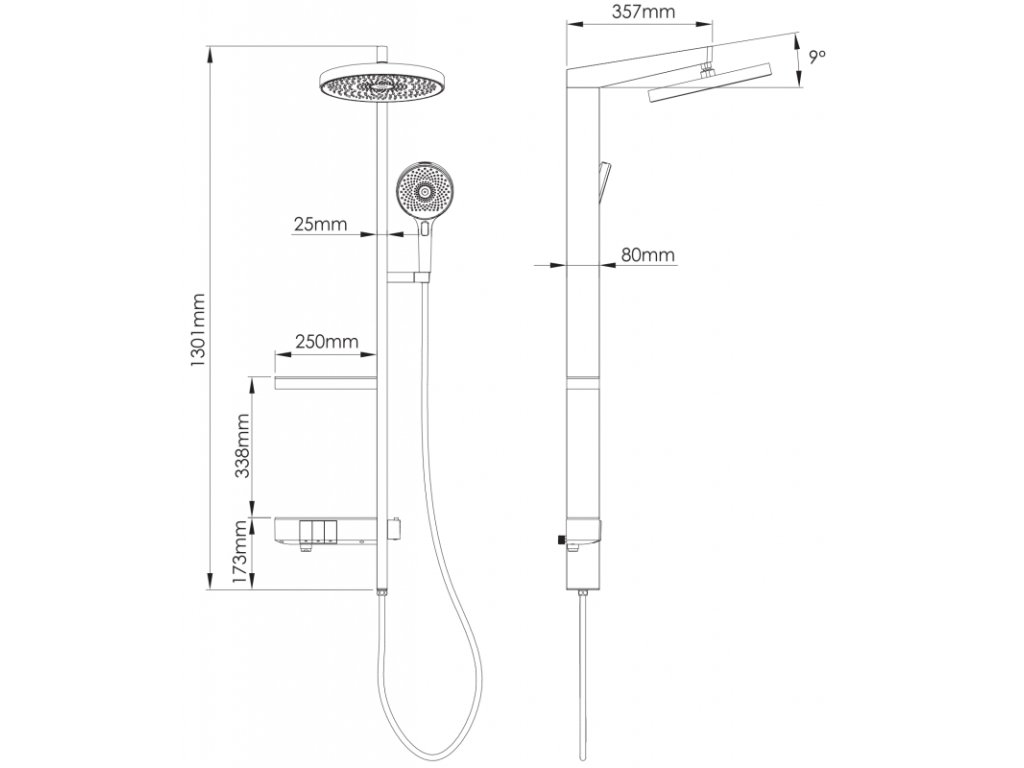 \nVeľkosť dažďovej sprchy: ø255 mm