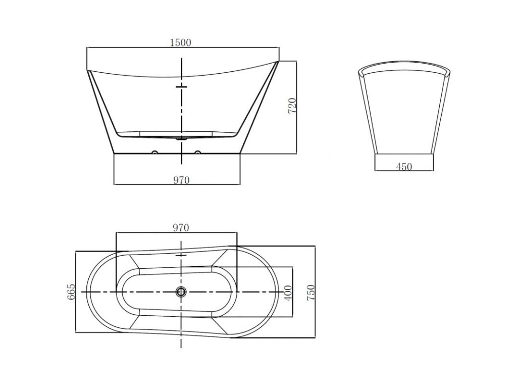 Mexen Dora voľne stojaca vaňa 150 x 75 cm, biela/čierna, prepad chróm - 52071507575-01