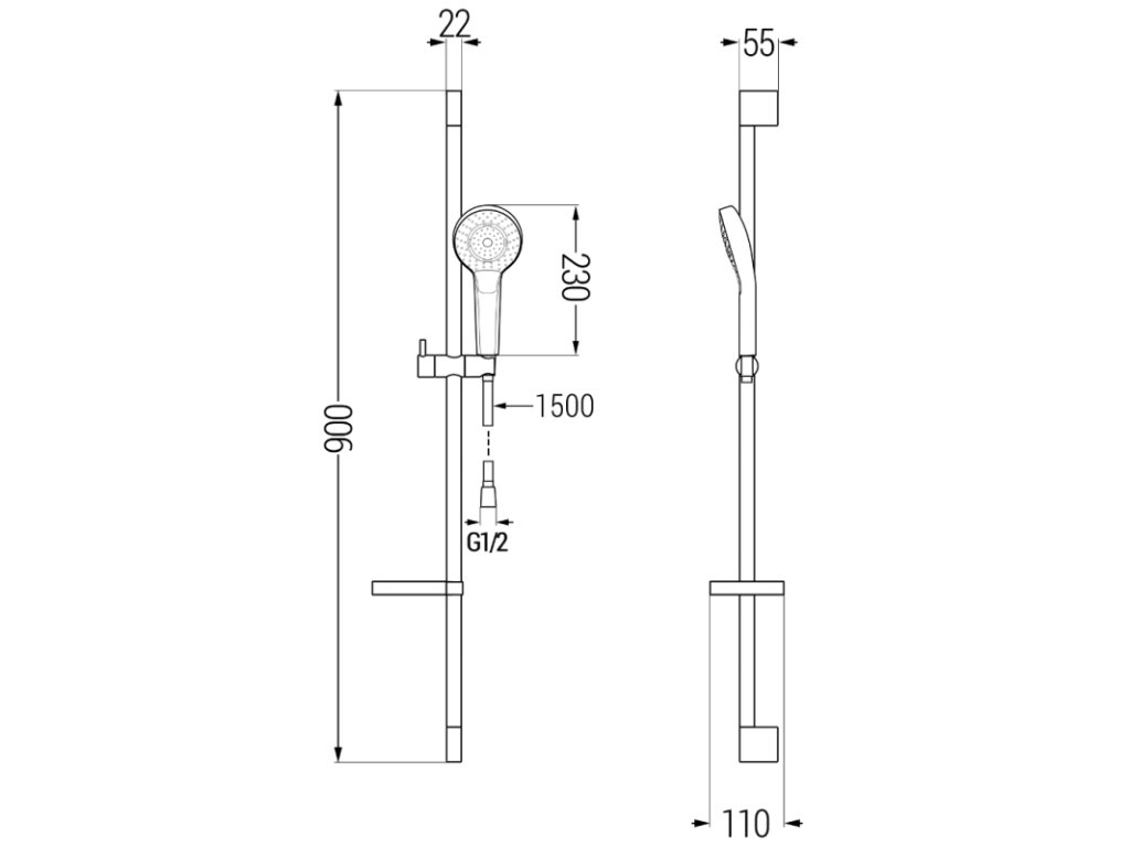 Mexen DS05 sprchová súprava posuvná, chróm - 785054583-00