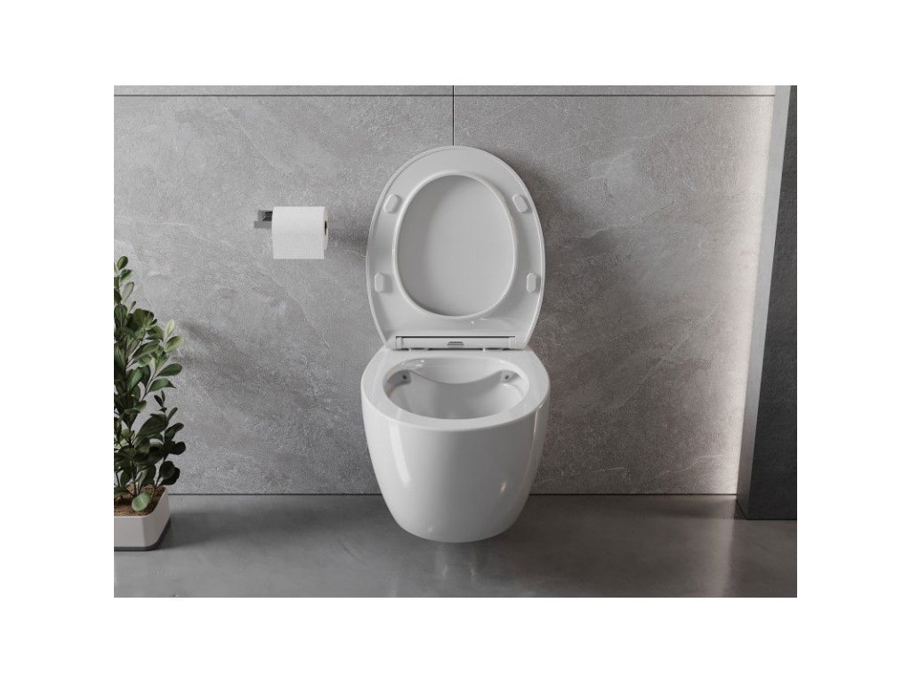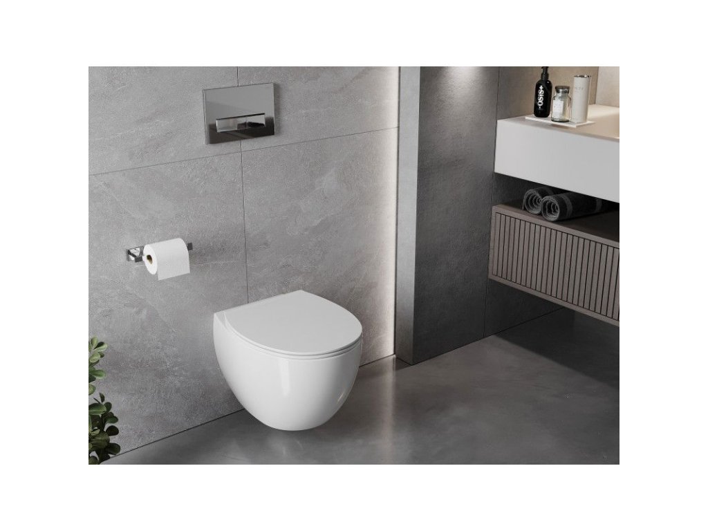 Mexen Egg WC misa bez okrajov so štíhlym voľne stojacim sedadlom, duroplast, biely lesk - 30245000
