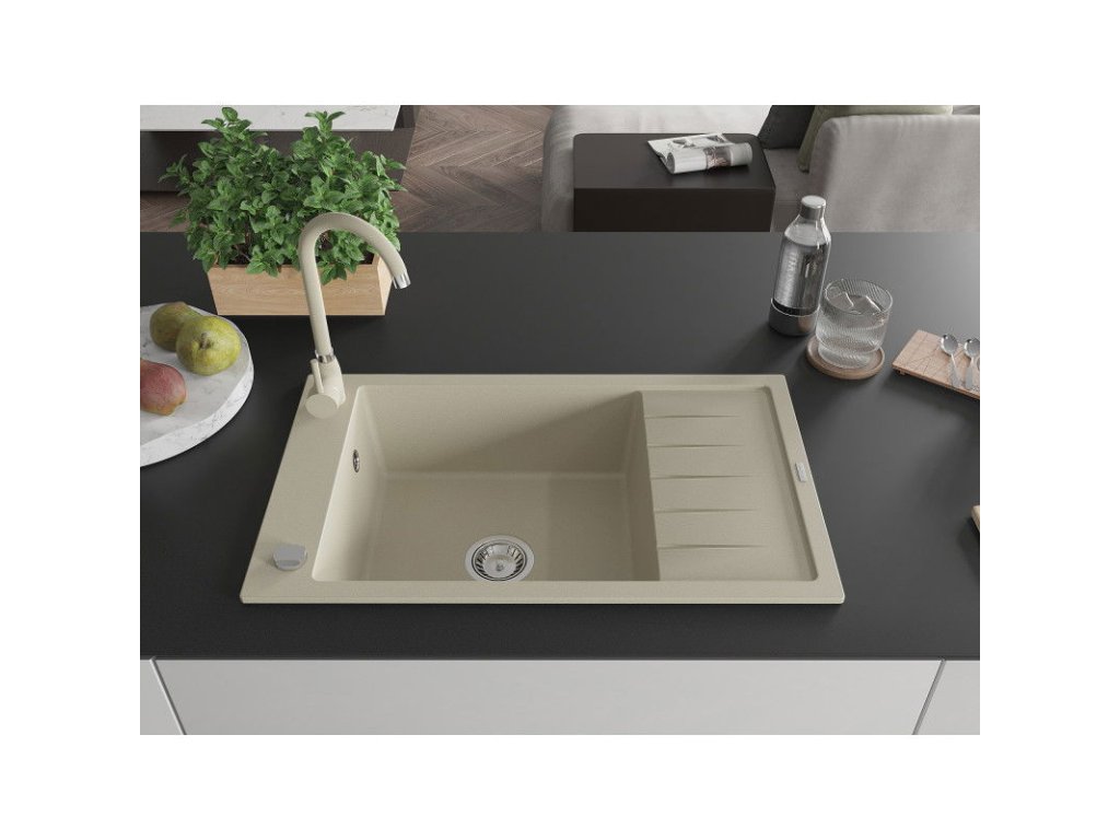 Mexen Elias drez granitový 1-komorový s odkvapkávačom + batéria Telma, béžový - 6511-69-670200-69