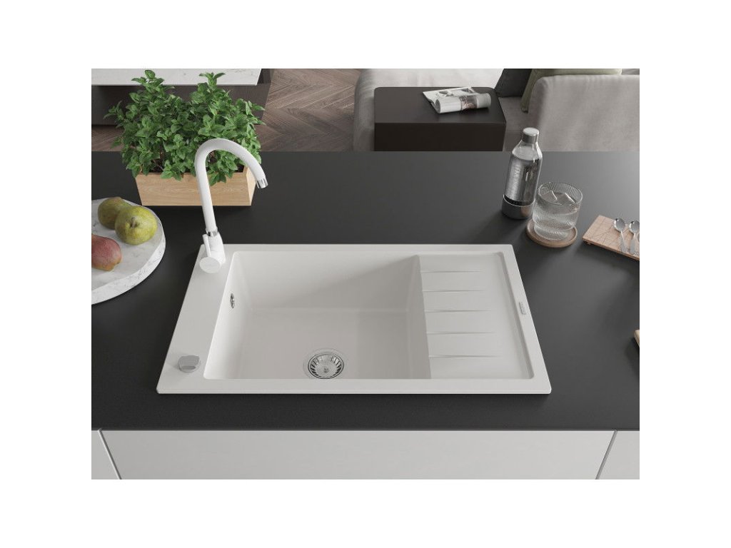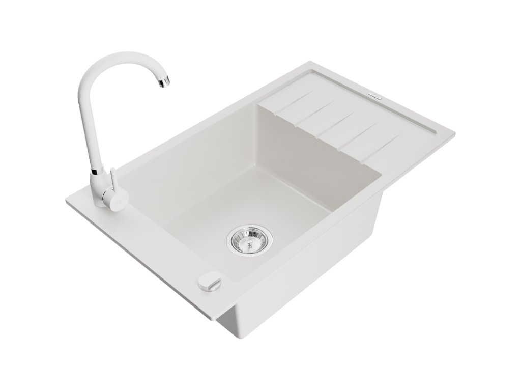 Mexen Elias drez granitový 1-komorový s odkvapkávačom + batéria Telma, biely - 6511-20-670200-20