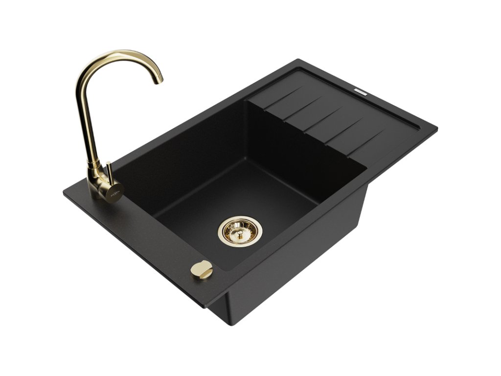 Mexen Elias drez granitový 1-komorový s odkvapkávačom + batéria Telma, čierny - 6511-77-670200-50