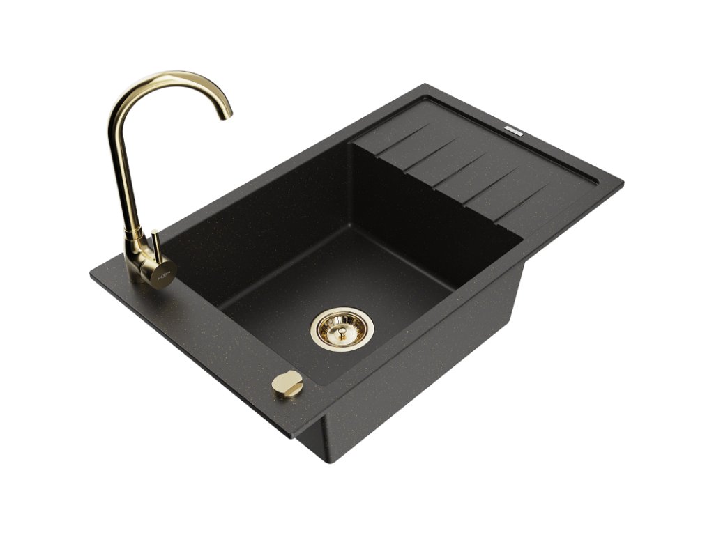 Mexen Elias drez granitový 1-komorový s odkvapkávačom + batéria Telma, čierny/zlatý - 6511-75-670200-50