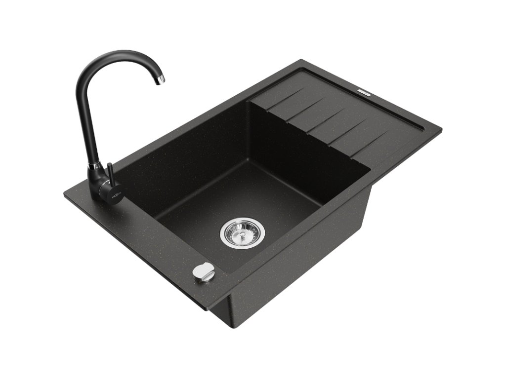 Mexen Elias drez granitový 1-komorový s odkvapkávačom + batéria Telma, čierny/zlatý - 6511-75-670200-70