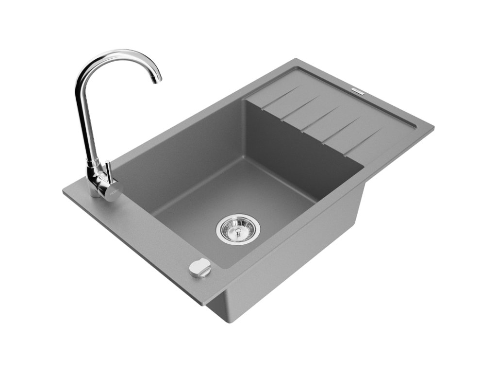 Mexen Elias drez granitový 1-komorový s odkvapkávačom + batéria Telma, šedý - 6511-71-670200-00