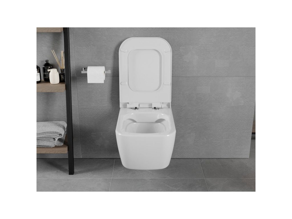 \n \n \nTechnické údaje: \n \nrozmery: 52x34,5x35,5 cm \n \ninštalácia: závesná \n \nsplachovací systém: Rimless (bez okrajov) \n \nfarba: biela \n \nmateriál: sanitárna keramika \n \ntyp dosky: pomaly padajúca \n \nfarba: biela \n \nmateriál: tvrdený plast \n \nSLIM verzia: áno \n \njednoduché uvoľnenie: áno \n \nkovové pánty: ánoDodatočné parametre
