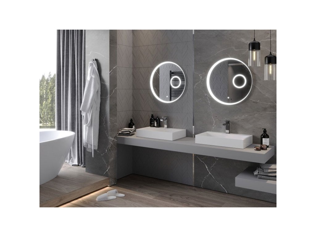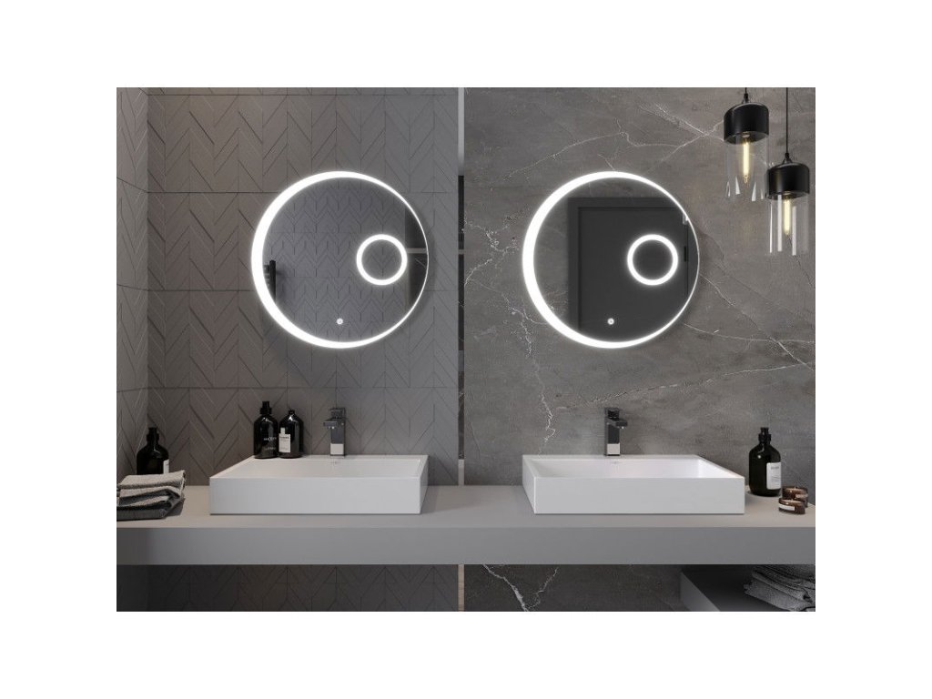 Mexen Ella osvetlené kúpeľňové zrkadlo s kozmetickým zrkadlom, okrúhle 60 cm, LED 6000K, antipar - 9811-060-060-611-00