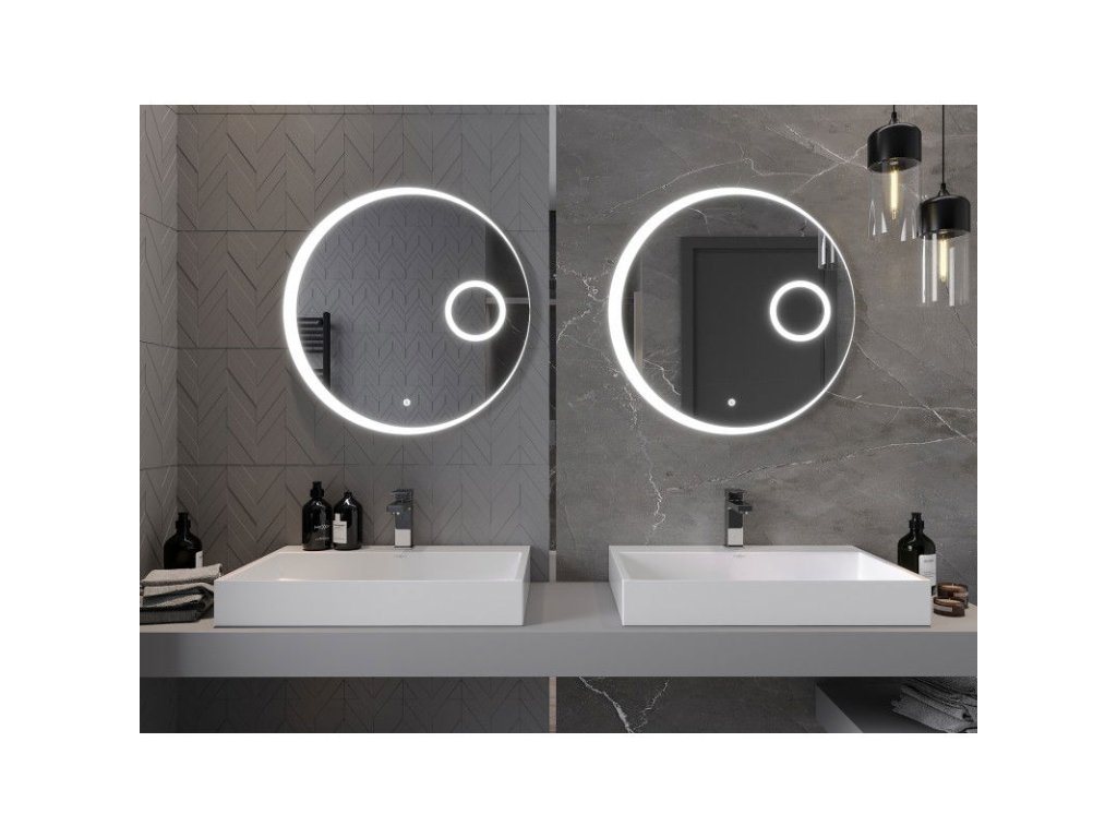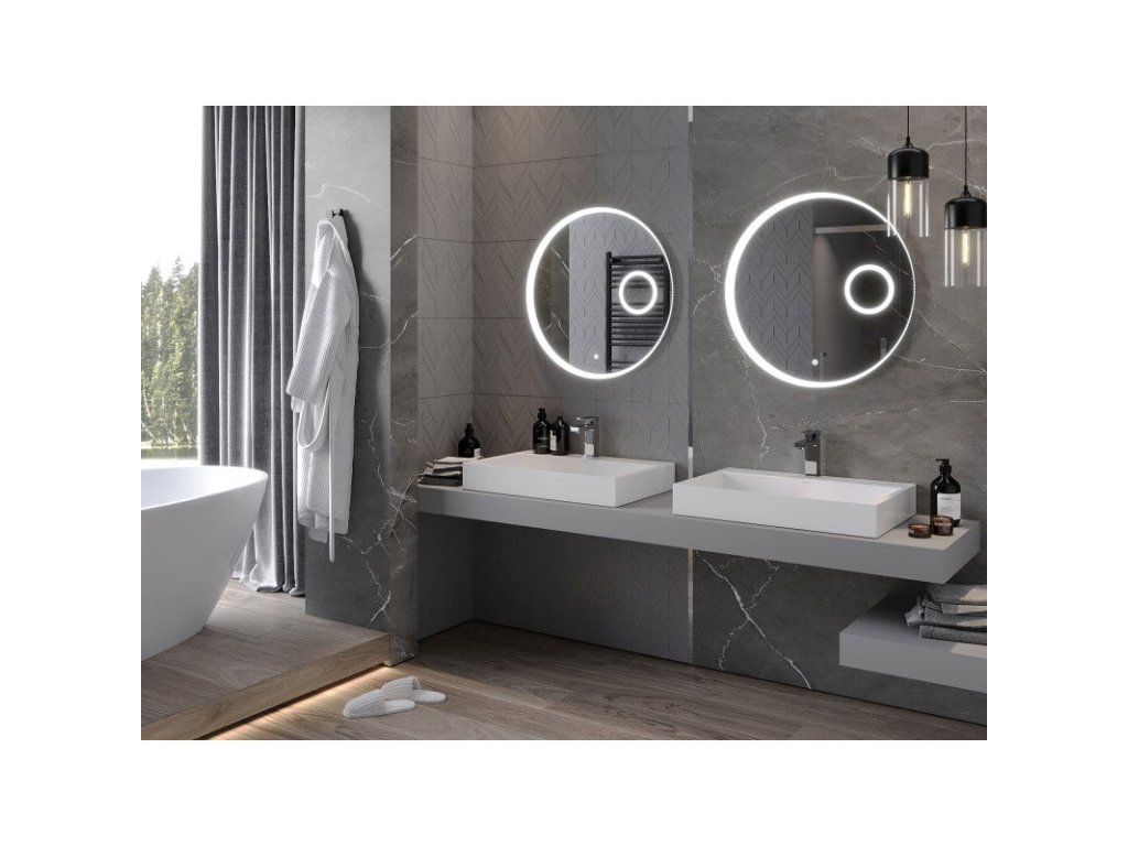 Mexen Ella osvetlené kúpeľňové zrkadlo s kozmetickým zrkadlom, okrúhle 70 cm, LED 6000K, antipar - 9811-070-070-611-00