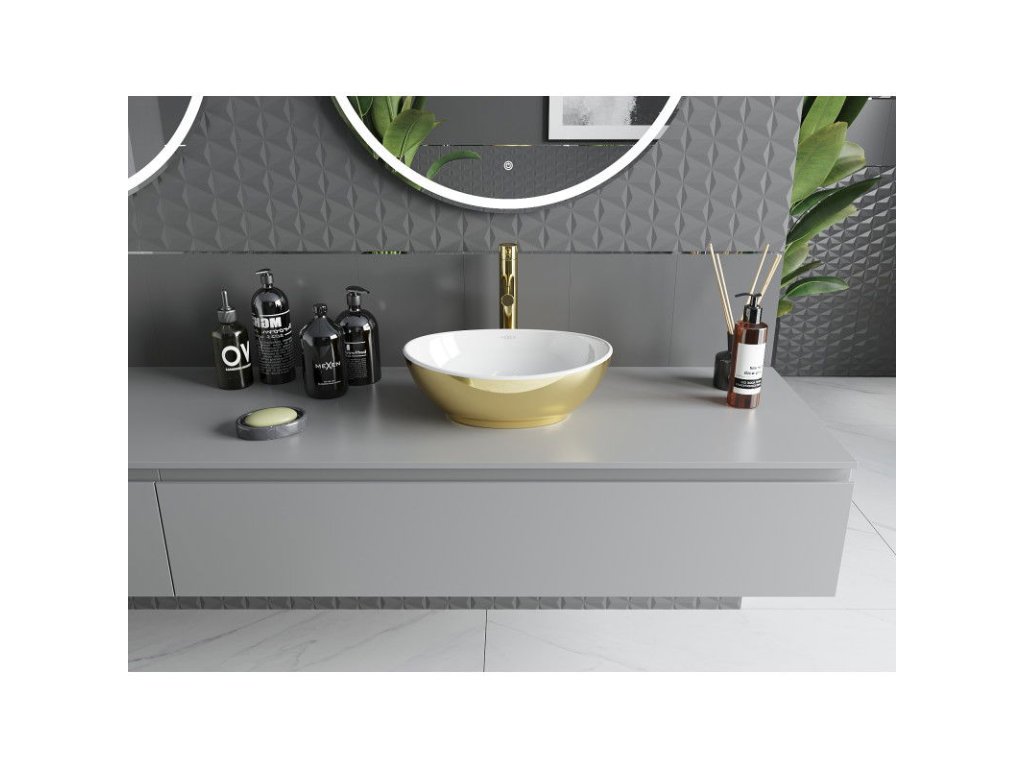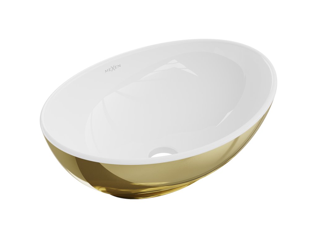 Umývadlo na dosku Mexen Elza 40 x 33 cm v elegantnej kombinácii bielej a zlatej farby je ideálnym riešením pre moderné kúpeľne. Je vyrobené z vysokokvalitnej sanitárnej keramiky, vyznačuje sa oválnym tvarom a lesklým povrchom, vďaka čomu pôsobí štýlovo a esteticky. Okrem toho absencia prepadu a otvoru na vodovodný kohútik poskytuje väčšiu flexibilitu pri usporiadaní. Umývadlo má rozmery 40,5 x 33 cm, vďaka čomu ho možno ľahko integrovať do rôznych priestorov.Dodatočné parametre