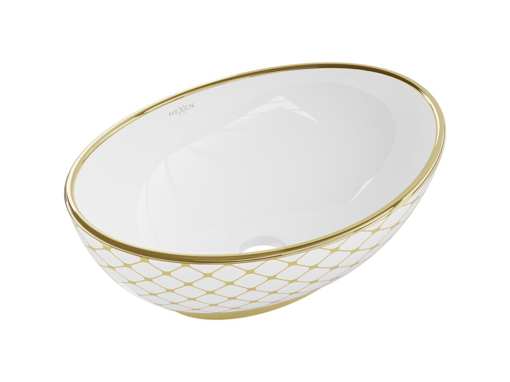 Mexen Elza umývadlo na dosku 40 x 33 cm, biely/zlatý mriežkovaný vzor - 21014009