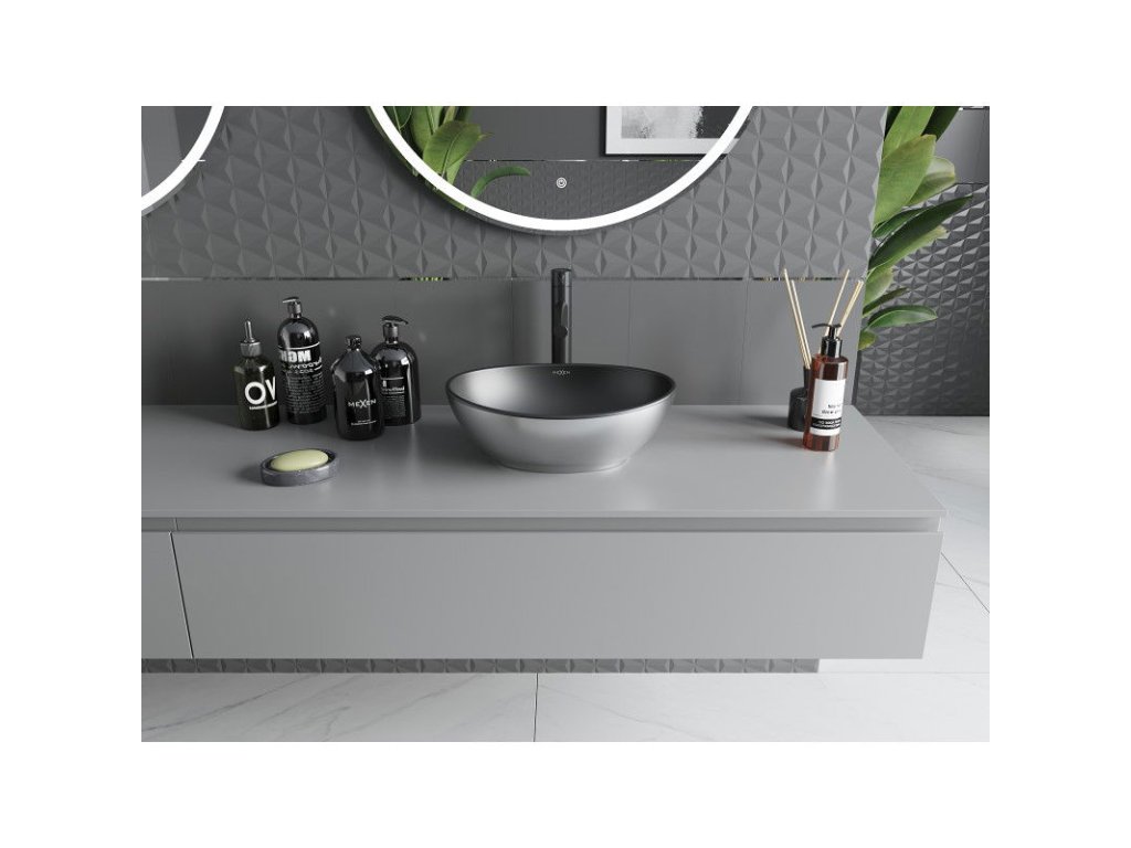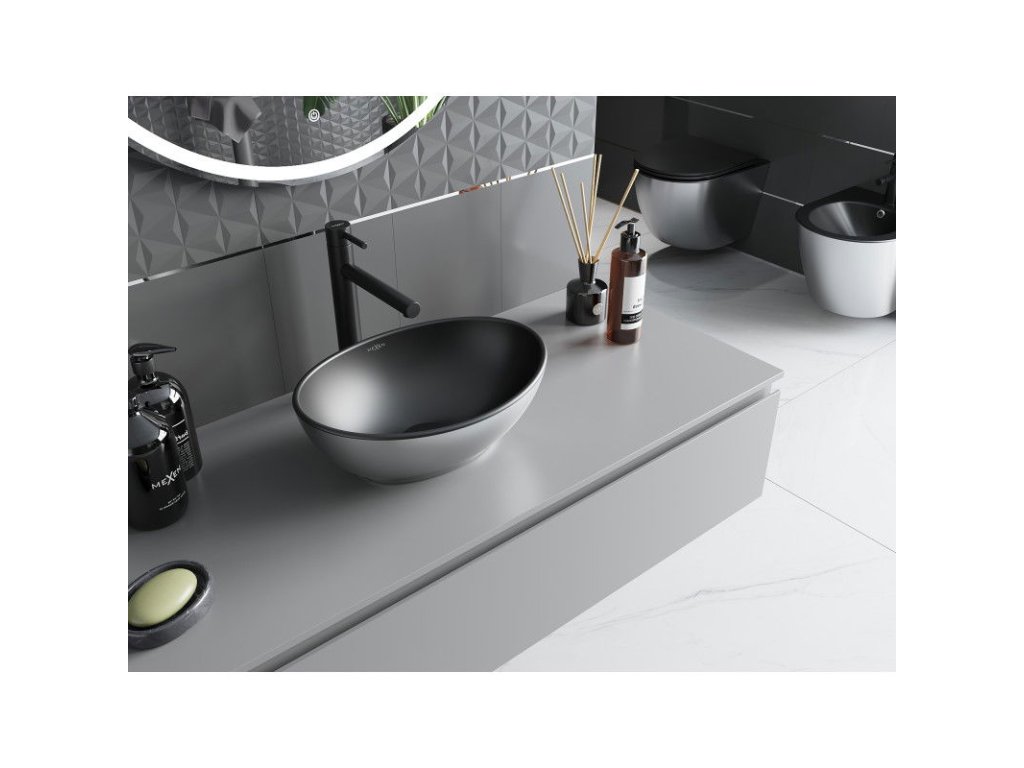 Zmluva je dokonalou kombináciou moderného dizajnu a funkčnosti. Umývadlo na dosku s rozmermi 40 x 33 cm v matnej čierno-striebornej farbe je vyrobené z vysokokvalitnej sanitárnej keramiky, ktorá zaručuje odolnosť a eleganciu. Vďaka svojmu oválnemu tvaru a matnému povrchu sa stane elegantným akcentom v každej kúpeľni. Ponúka hĺbku 12,5 cm a nemá otvor na prepad, čo podčiarkuje minimalistický charakter. Ideálna pre tých, ktorí oceňujú moderné riešenia a estetiku v priestore kúpeľne.Dodatočné parametre