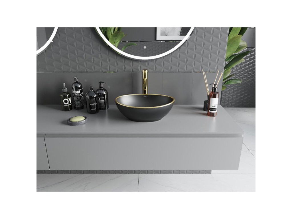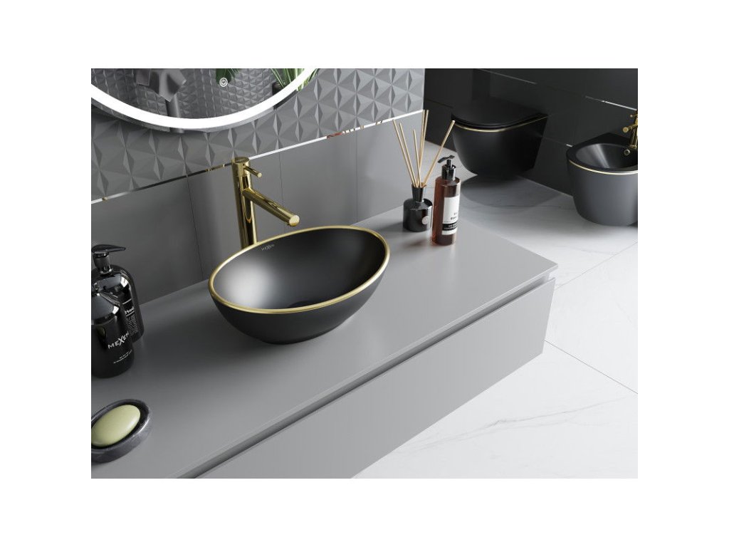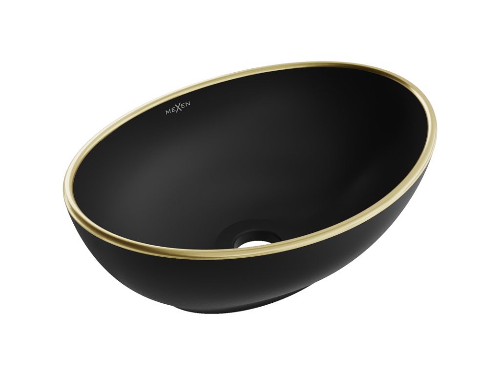Mexen Elza umývadlo na dosku 40 x 33 cm, čierny matný/zlatý okraj - 21014025