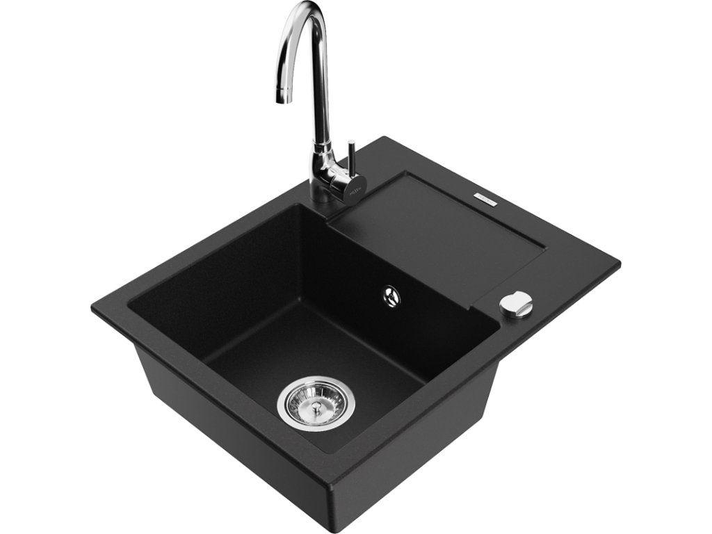 Mexen Enzo drez granitový 1-komorový s odkvapkávačom + batéria Telma, čierny - 6506-77-670200-00