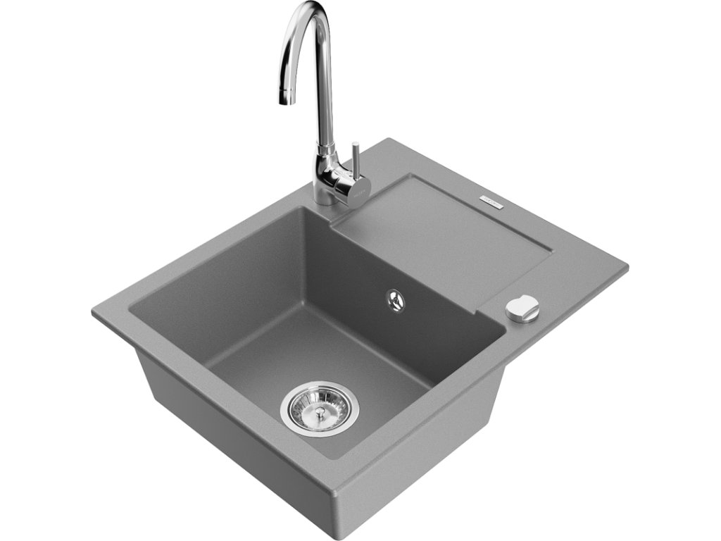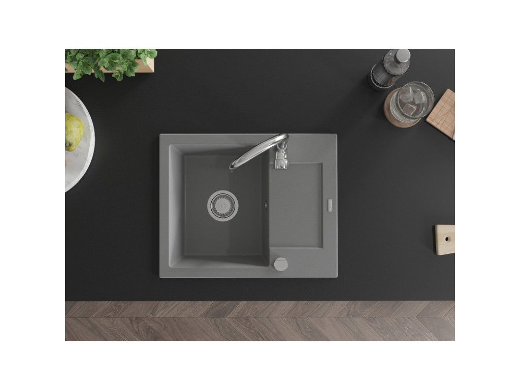 Mexen Enzo drez granitový 1-komorový s odkvapkávačom + batéria Telma, šedý - 6506-71-670200-00