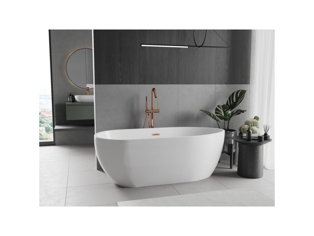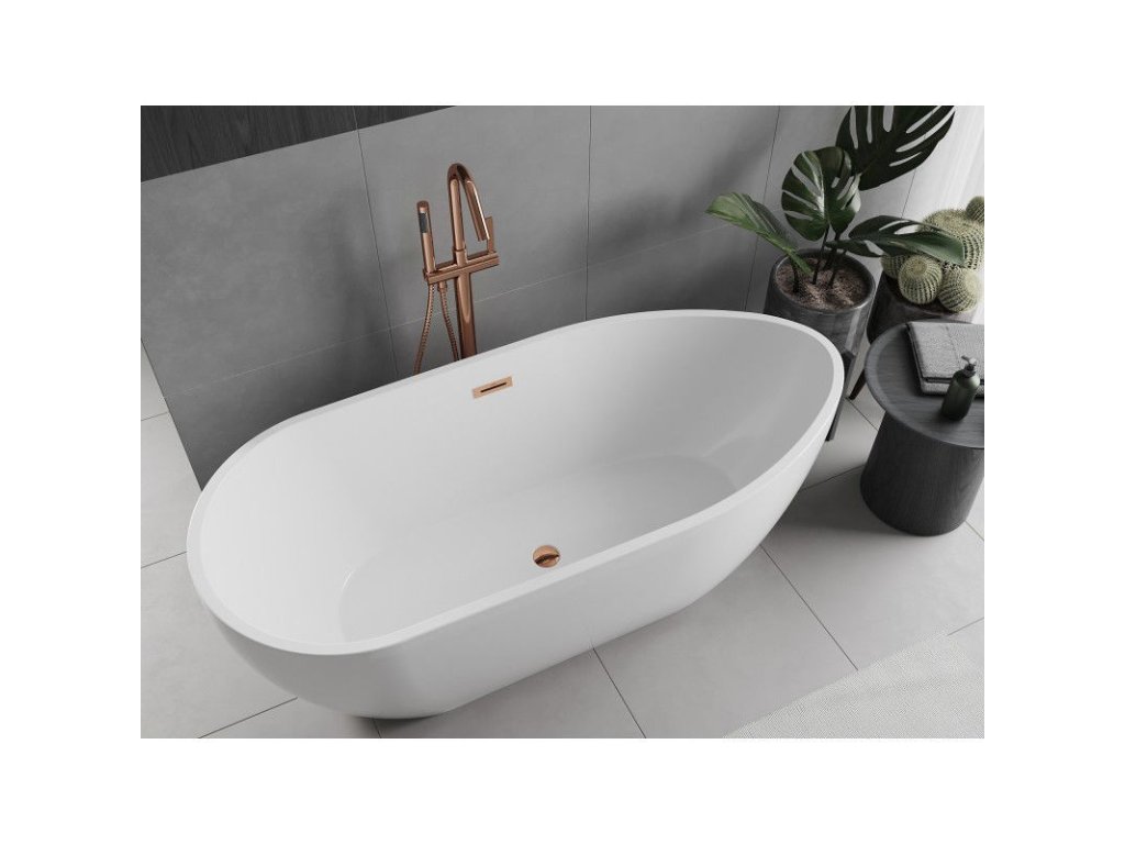 Mexen Eos voľne stojaca vaňa 150 x 75 cm, biela, prepad ružovo zlatý - 52471507500-60