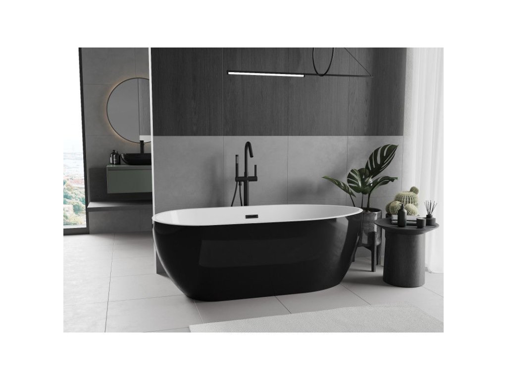 Voľne stojaca vaňa s rozmermi 150 x 75 cm je ideálnou voľbou pre vašu kúpeľňu. Je vyrobená zo sanitárneho akrylátu, dostupná v elegantnej kombinácii bielej a čiernej farby a má povrchovú úpravu odolnú voči dechtovaniu a UV žiareniu. Vďaka svojmu oválnemu tvaru a pololesklému povrchu zvýrazňuje estetiku interiéru. Vaňa je vybavená prepadovým otvorom a súpravou sifónu a zacvakávacej zátky pre pohodlie a funkčnosť.Dodatočné parametre