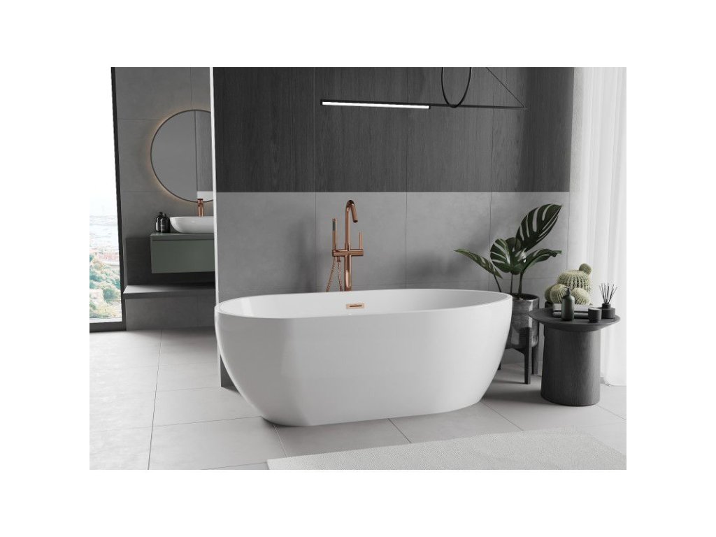 Mexen Eos voľne stojaca vaňa 170 x 75 cm, biela, prepad z brúsenej medi - 52471707500-65