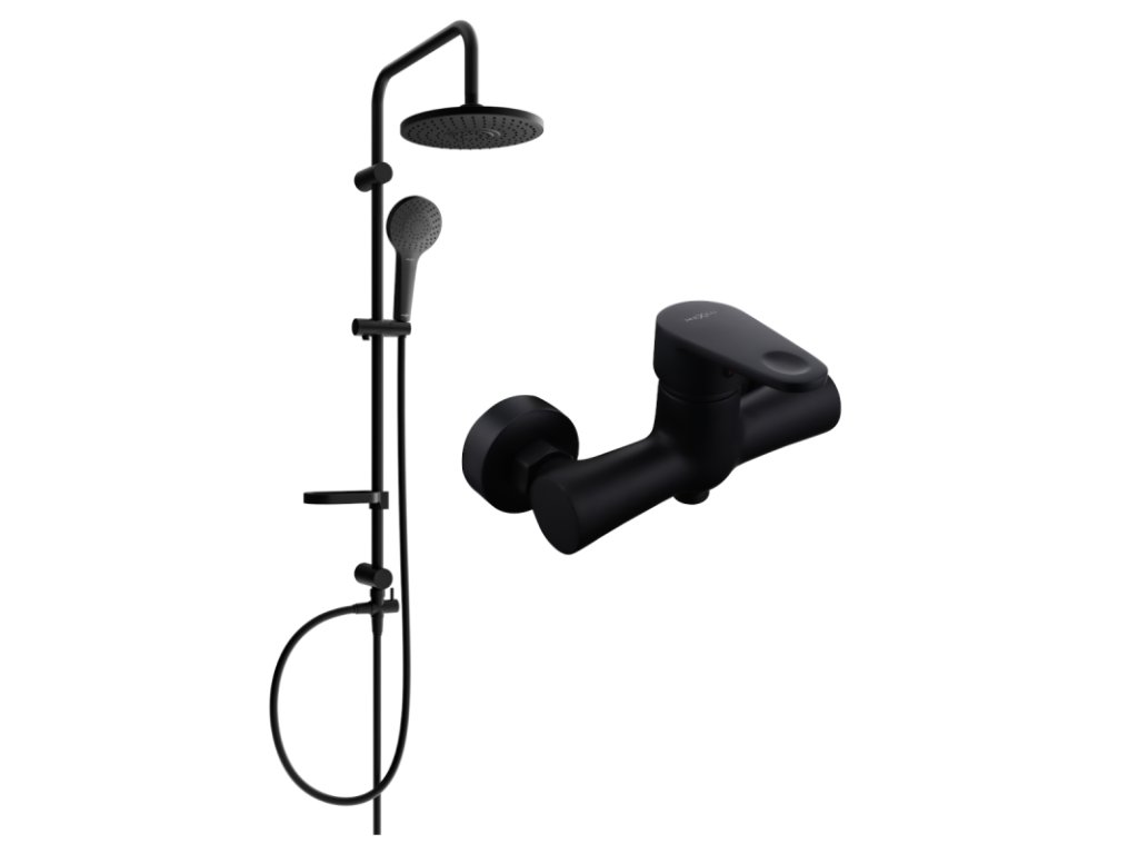 Mexen Erik nástenná sprchová súprava s dažďovou sprchou, sprchová batéria Kama, čierna - 72540205-70