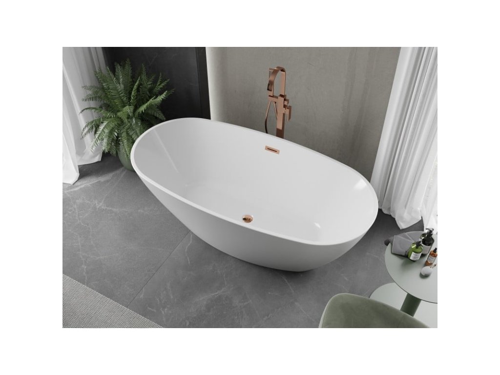 Mexen Eris voľne stojaca vaňa 155 x 80 cm, biela, prepad ružovo zlatý - 53441558000-60