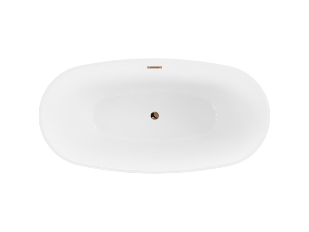 Voľne stojaca vaňa s rozmermi 180 x 80 cm je ideálnym riešením pre moderné kúpeľne. Jej oválny tvar a lesklý povrch v čiernej a bielej farbe zdôrazňujú eleganciu interiéru. Vysoká kvalita sanitárneho akrylátu zaručuje odolnosť, zatiaľ čo ružovozlatá lišta dodáva jedinečný nádych. Prepadový otvor a centrálny odtok zvyšujú funkčnosť. Vaňa je odolná voči dechtovaniu a UV žiareniu, čo znamená, že si dlho zachová svoj krásny vzhľad.Dodatočné parametre