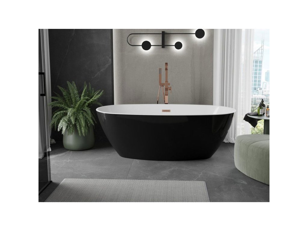 Mexen Eris voľne stojaca vaňa 180 x 80 cm, biela/čierna, prepad z brúsenej medi - 53441808075-65