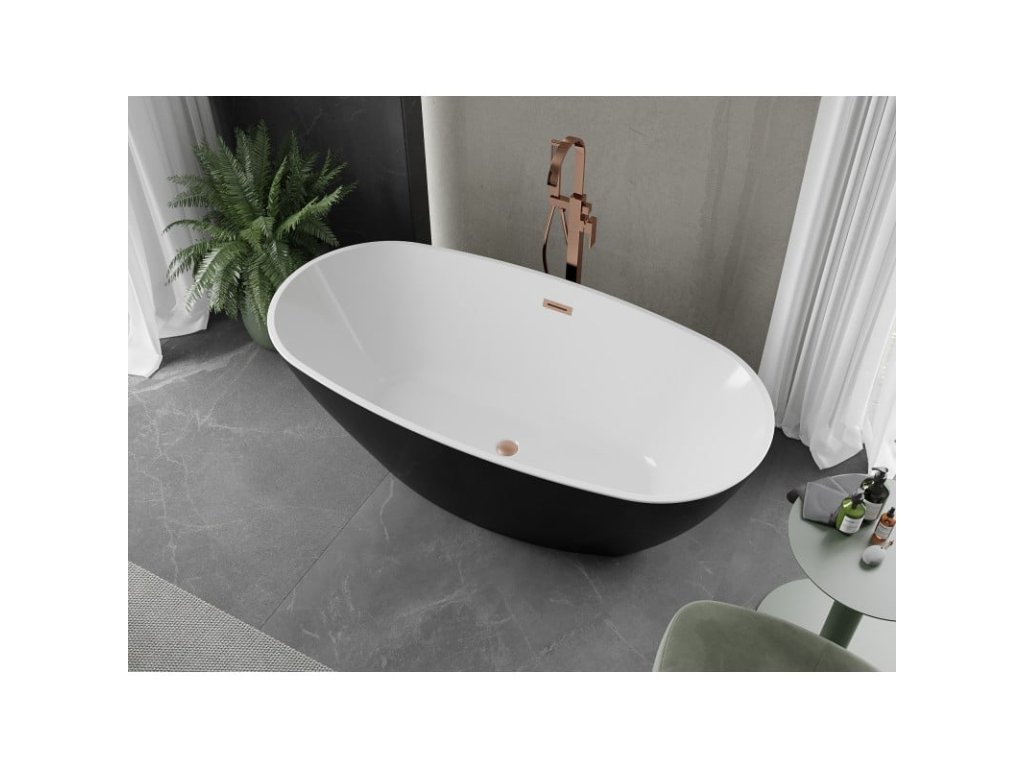 Mexen Eris voľne stojaca vaňa 180 x 95 cm, biela/čierna, prepad z brúsenej medi - 53441809575-65