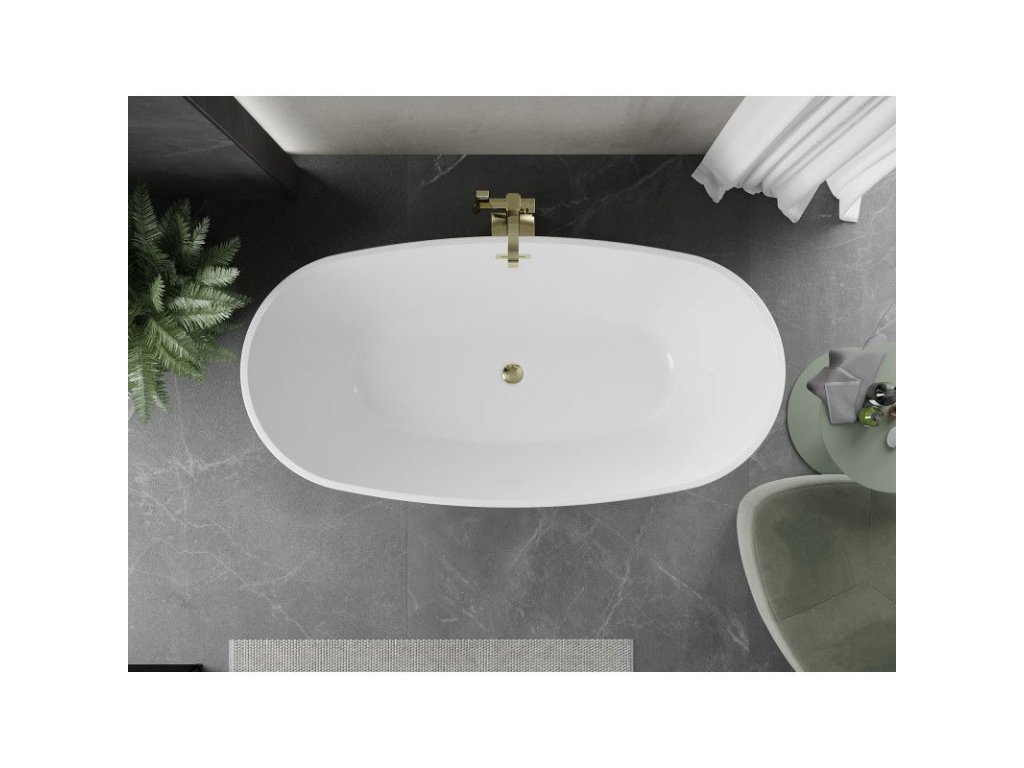 Mexen Eris voľne stojaca vaňa 180 x 95 cm, biela/čierna, zlatý prepad - 53441809575-50