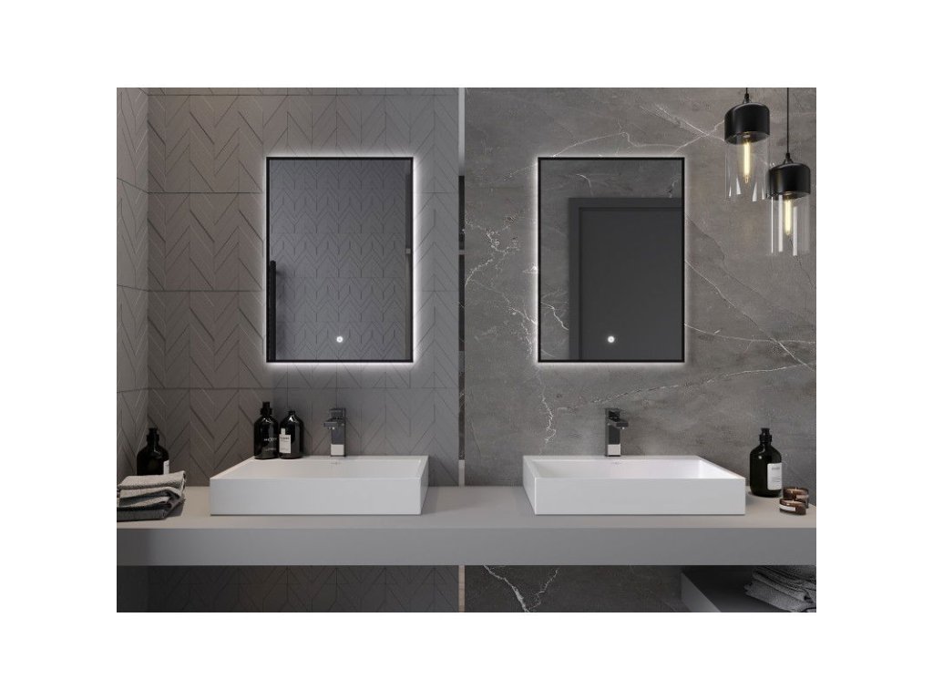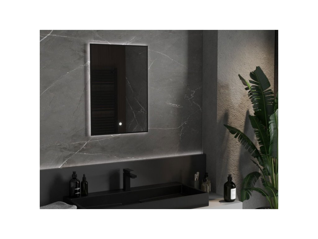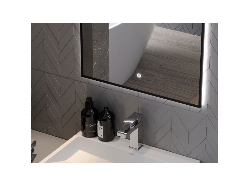 Mexen Erma osvetlené kúpeľňové zrkadlo 50 x 70 cm, LED 6000K, antipara, čierny rám - 9814-050-070-611-70