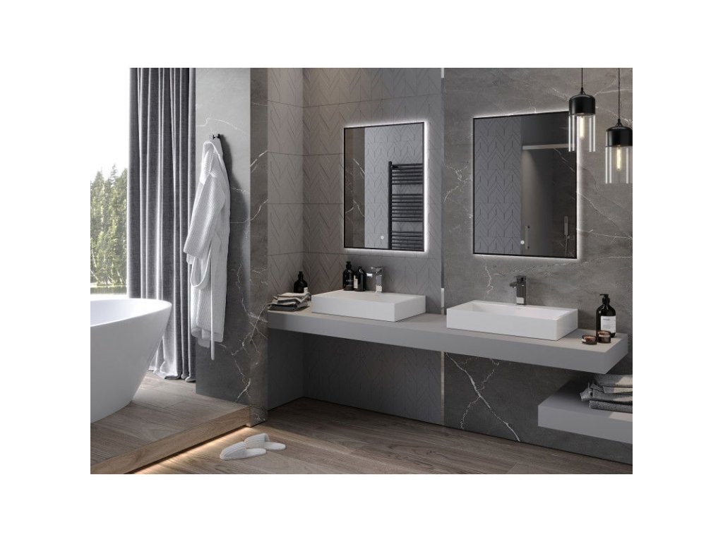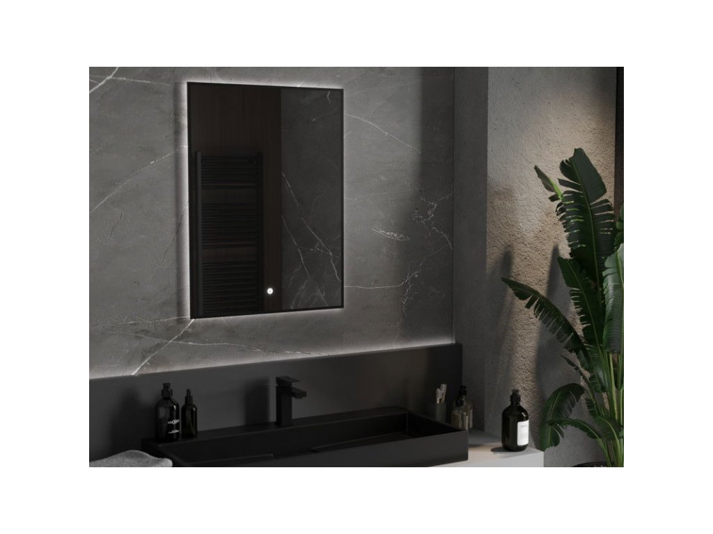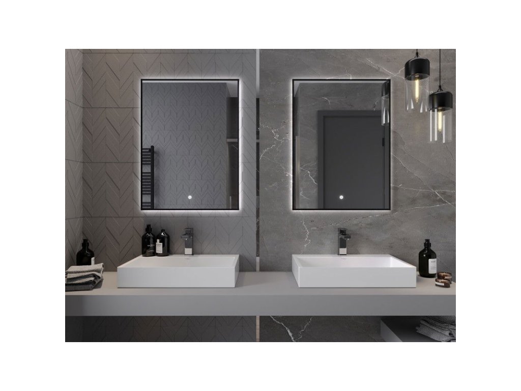 Mexen Erma osvetlené kúpeľňové zrkadlo 60 x 80 cm, LED 6000K, antipara, čierny rám - 9814-060-080-611-70