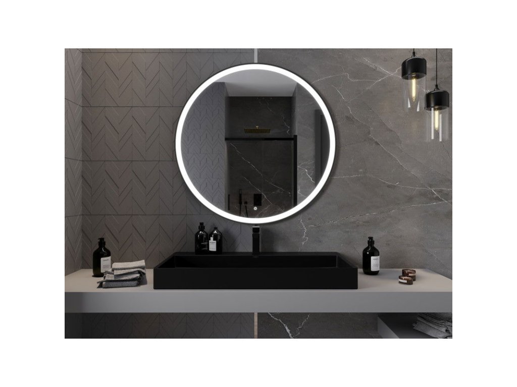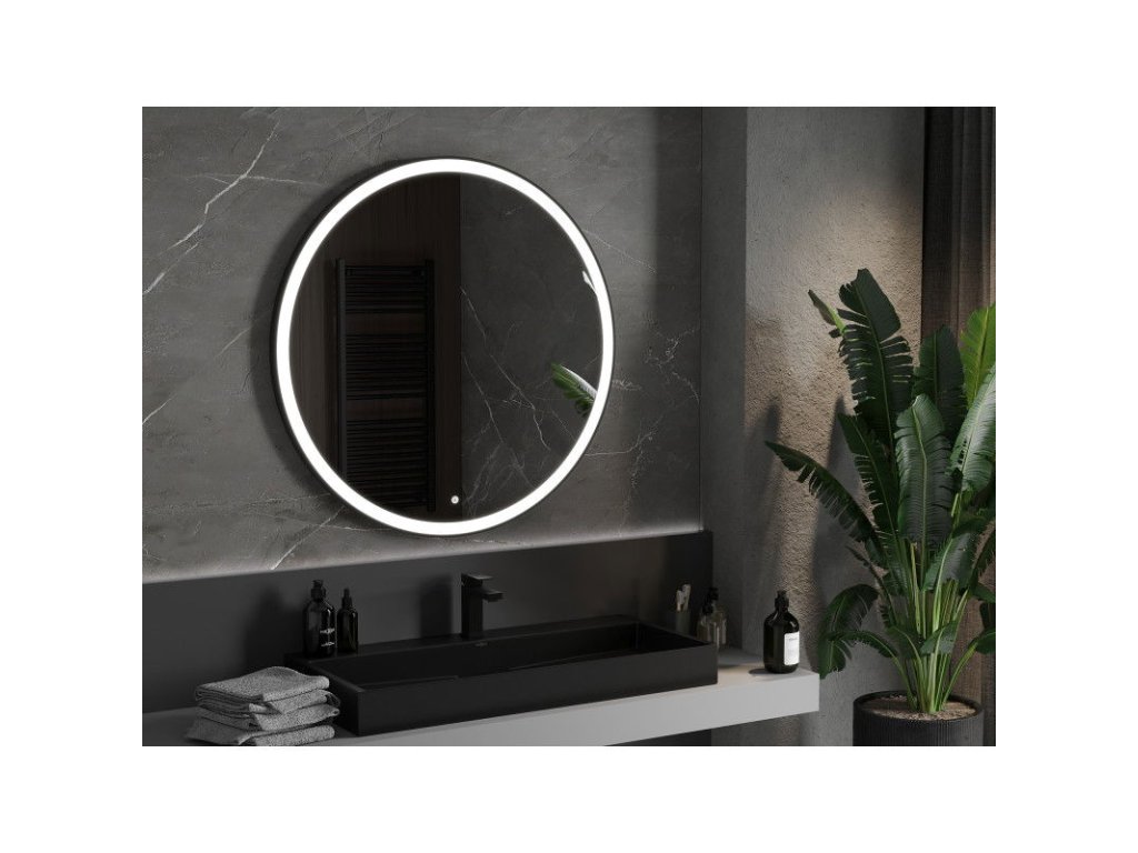 Mexen Esso osvetlené kúpeľňové zrkadlo, kruhové 100 cm, LED 6000K, antipara, čierny rám - 9825-100-100-611-70