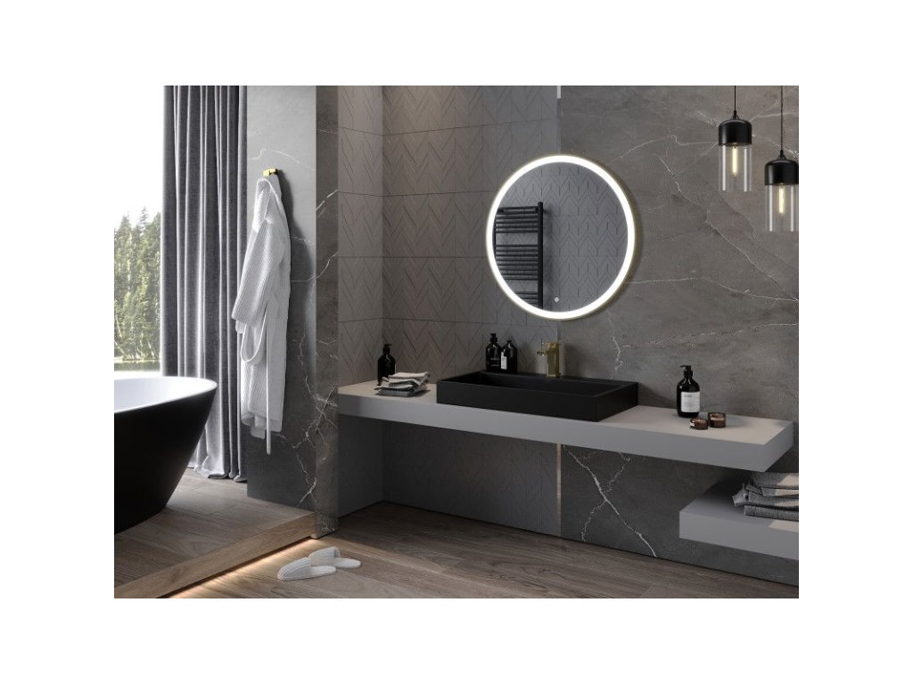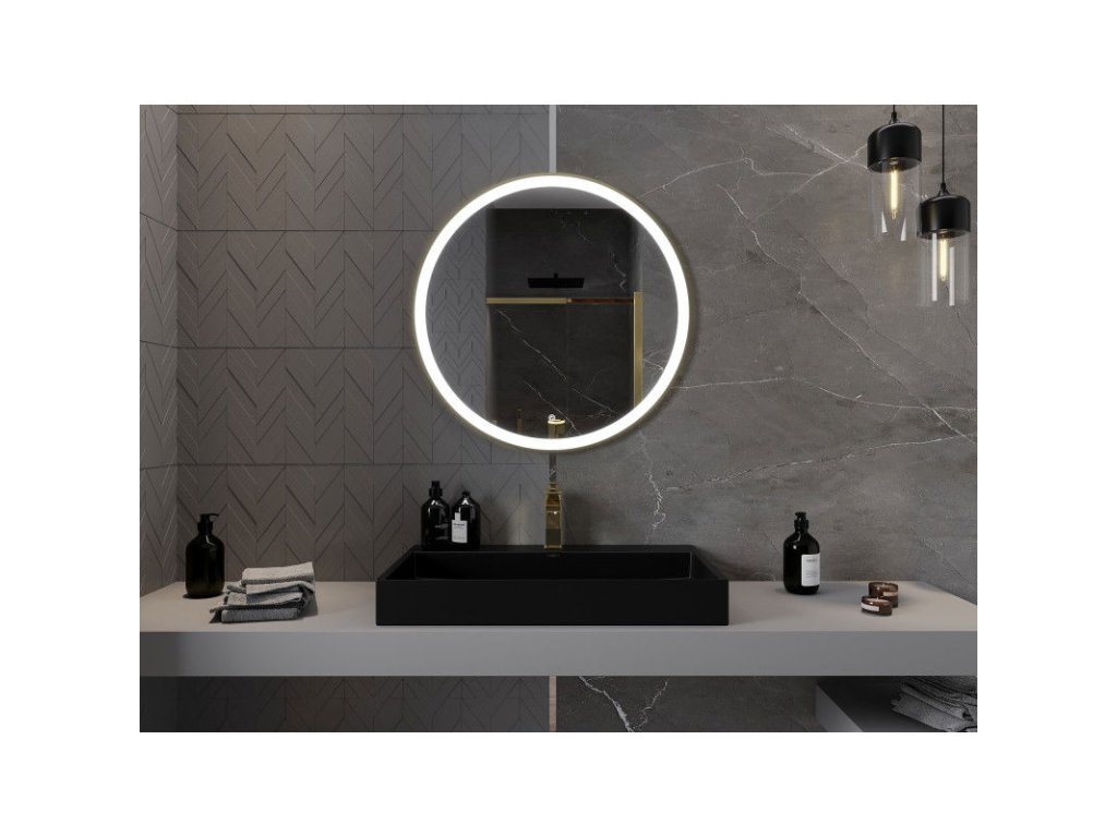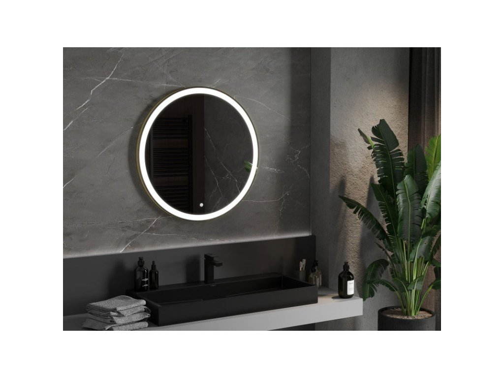 Mexen Esso osvetlené kúpeľňové zrkadlo, kruhové 80 cm, LED 6000K, antipara, zlatý rám - 9825-080-080-611-50