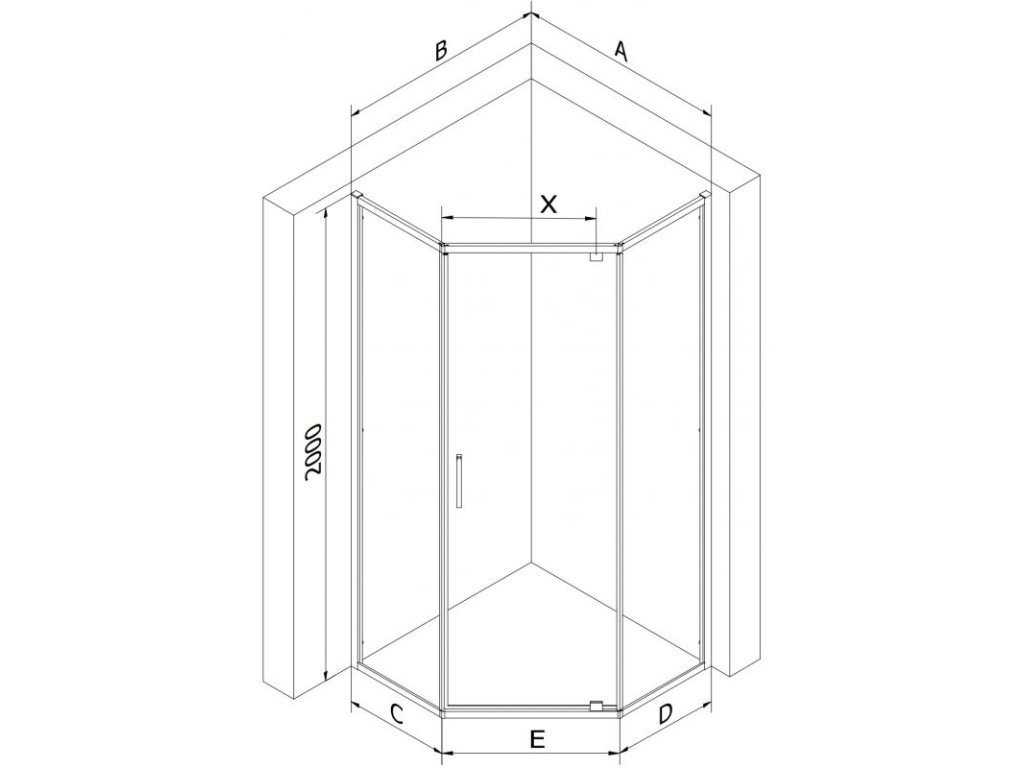 Mexen Exo päťuholníkový sprchový kút 90 x 90 cm, priehľadný, chróm - 812-090-090-01-00