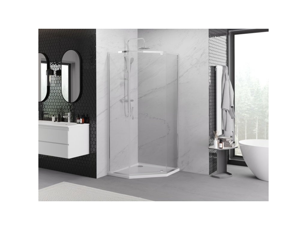 Mexen Exo päťuholníkový výklopný sprchový kút 100 x 100 cm, priehľadný, chróm - 812-100-100-01-00