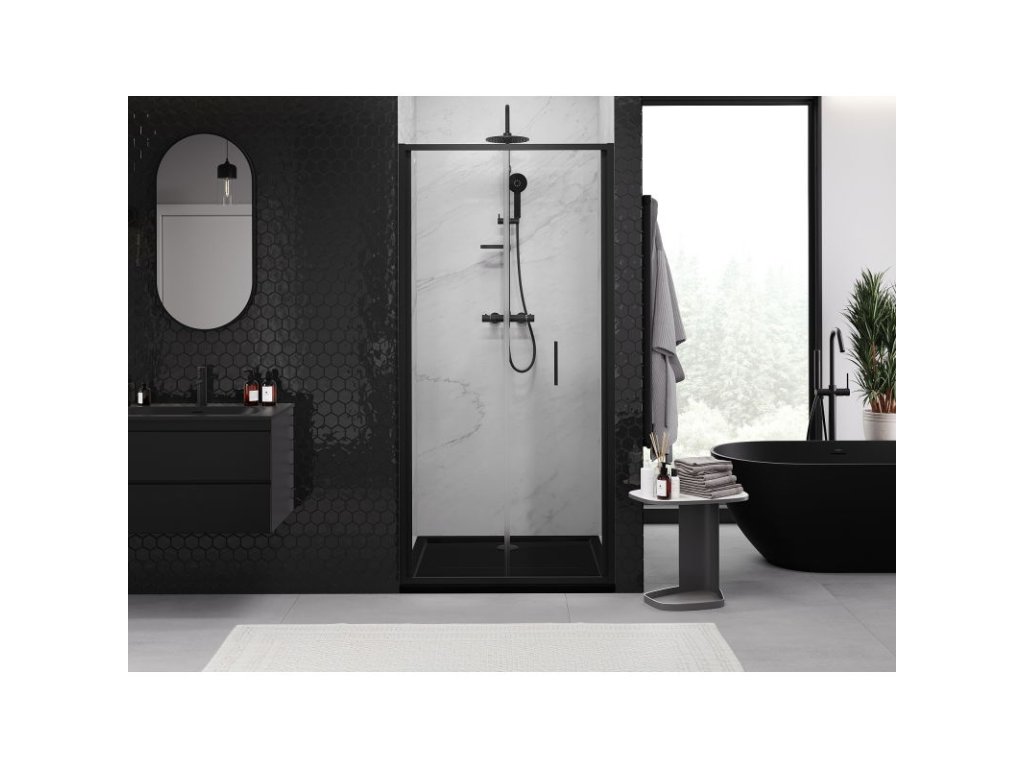 Mexen Exo skladacie sprchové dvere 75 cm, transparentné, čierne - 816-075-000-70-00
