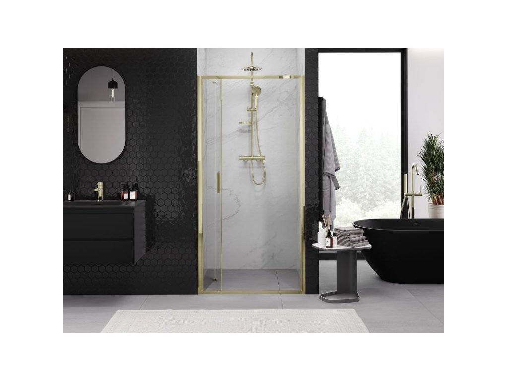 Mexen Exo skladacie sprchové dvere 80 cm, transparentné, zlaté - 816-080-000-50-00