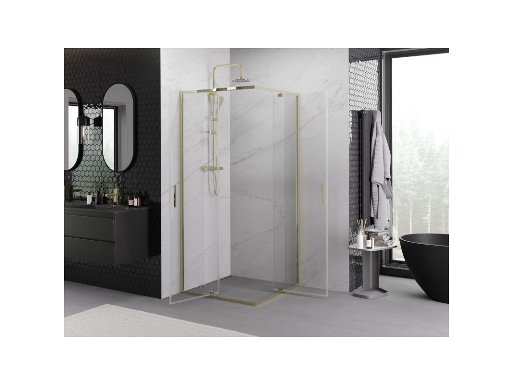 Mexen Exo štvorcový výklopný sprchový kút 70 x 70 cm, transparentný, zlatý - 8110-070-070-50-00
